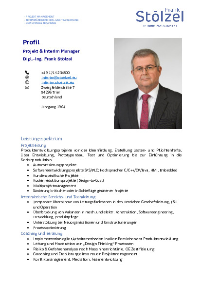 - Langjährige Führungserfahrung im Maschinenbau und der industriellen Automatisierung