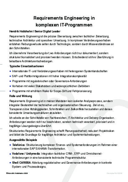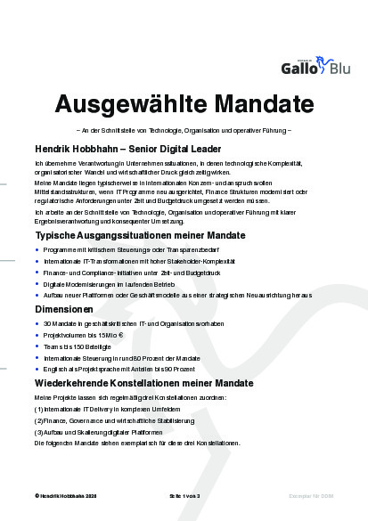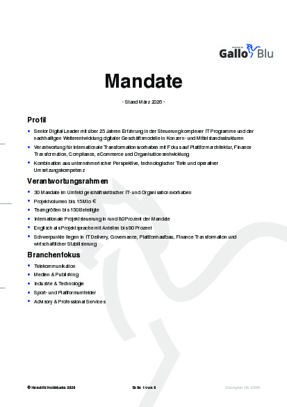 Ziel meiner Mandate ist es, Transparenz in komplexen Programmen herzustellen, Entscheidungswege zu verkürzen und geschäftskritische Vorhaben zuverlässig in die Umsetzung zu führen.