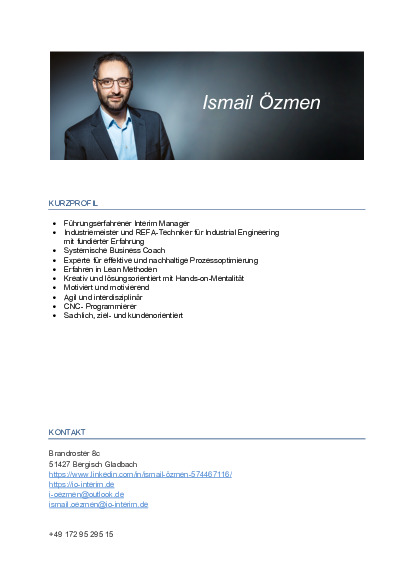- Kommunikationsstark, klar, lösungsorientiert – schnell integrierbar und wirksam