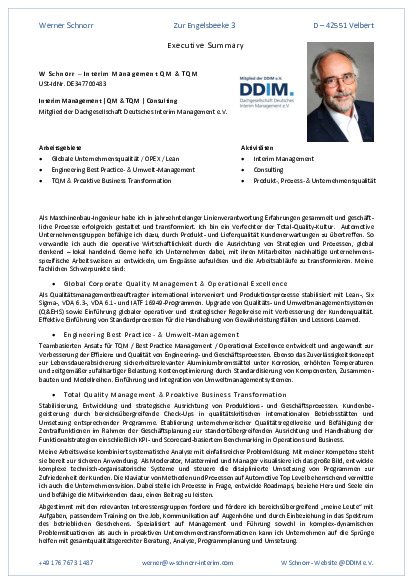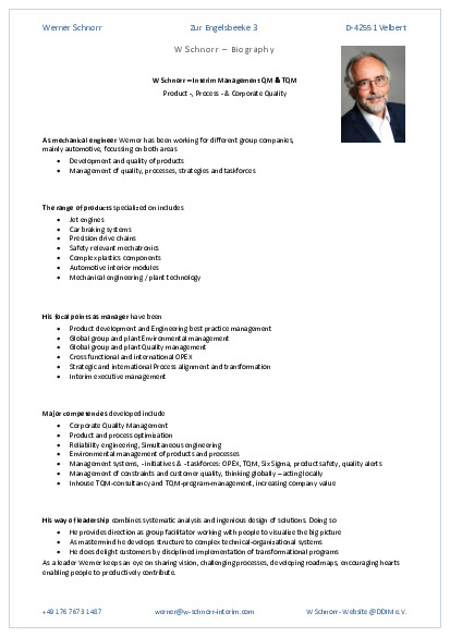 W Schnorr - Interim Management QM & TQM, Velbert / NRW