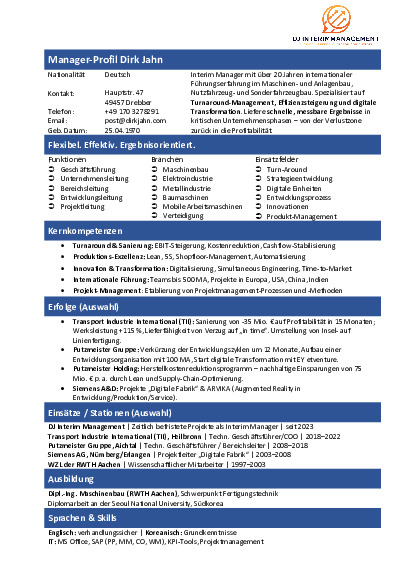 Interim Executive | CEO, CTO, COO |, Projekt Manager, Maschinenbau-Experte für Effizienz, Innovation & Profitabilität | Flexibel. Effektiv. Ergebnisorientiert.